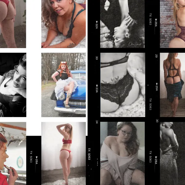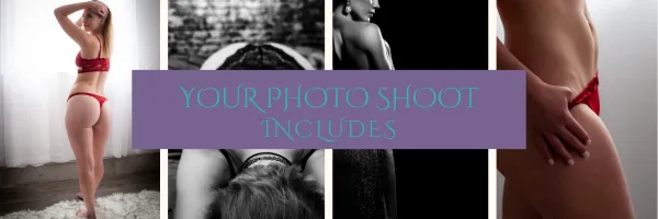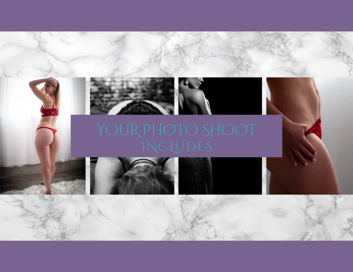 We will spend 2.5 hours creating magic with 4 different sets/ outfits. We love to start each set with layers to create variety, to reveal more underneath. Our studio is filled with lots of backdrops, furniture and props to play with.